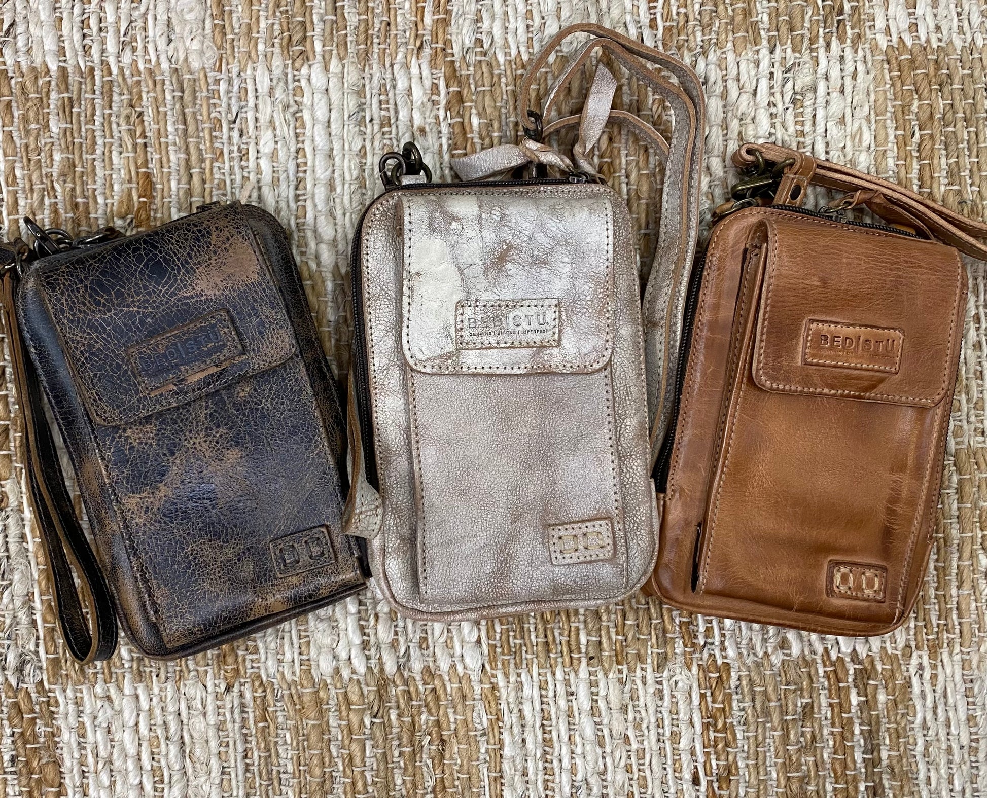 Compact leather phone case and essentials holder, adjustable and removable strap